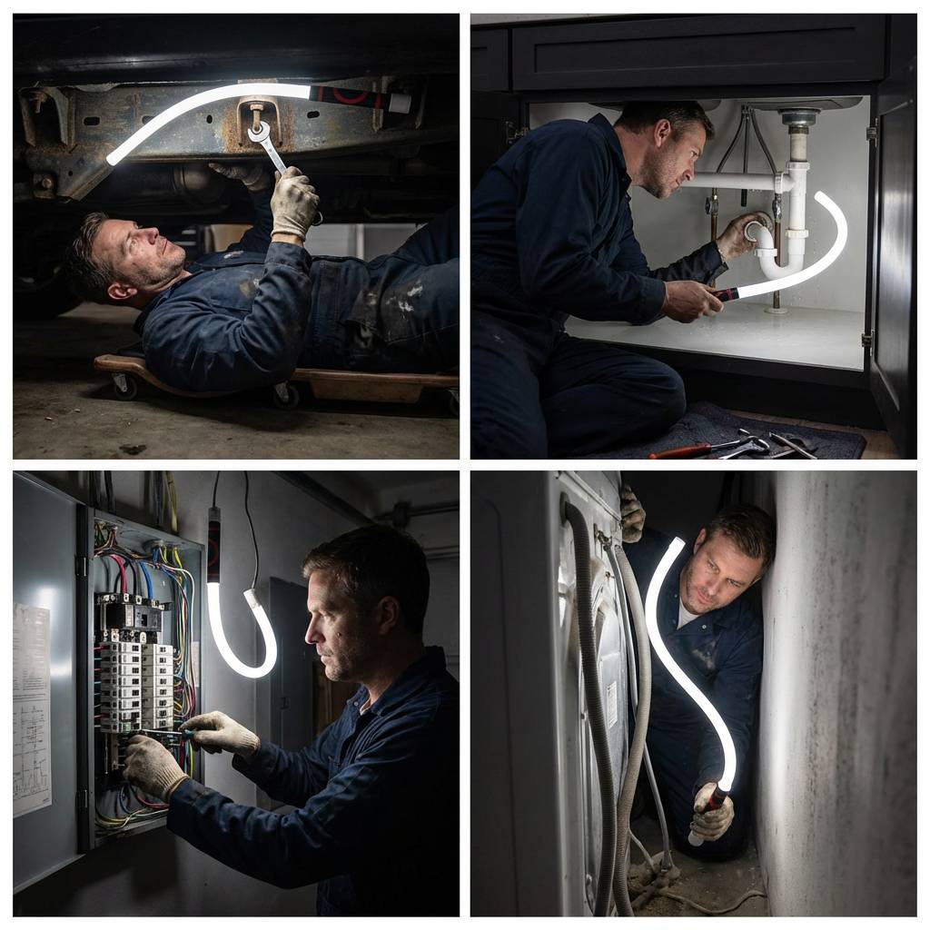 Designed for mechanics, DIYers, and anyone who works in dark, tight, hard-to-reach spaces — the LED Flashlight Stick bends, twists, and locks light exactly where you need it.