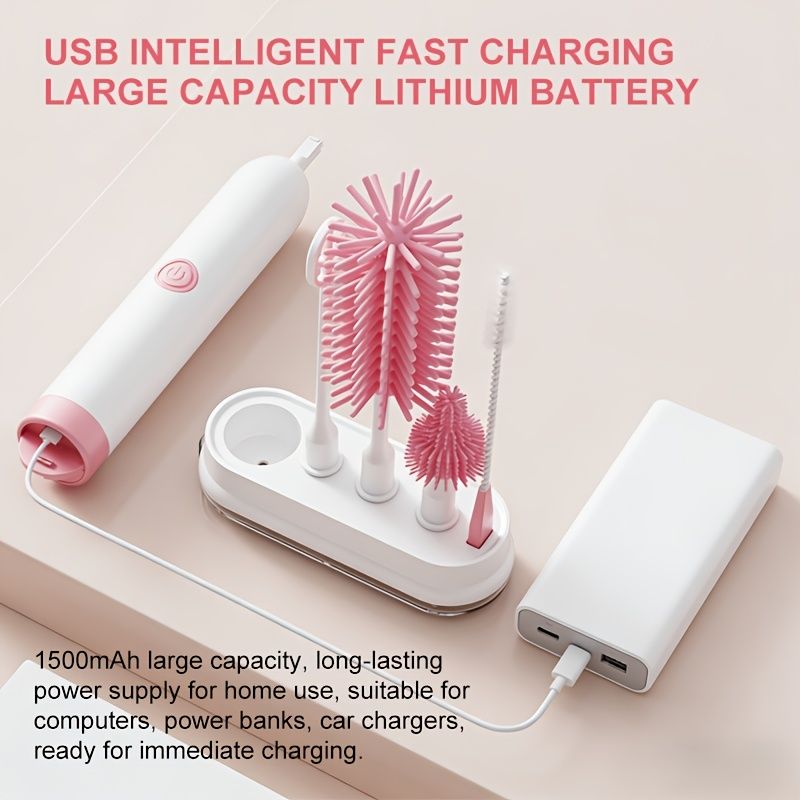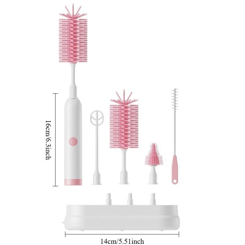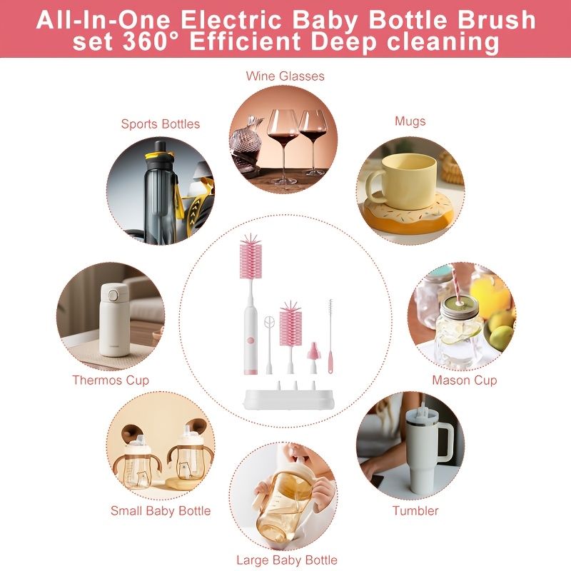 Rechargeable Electric Baby Bottle Brush Set – 5-in-1 Cleaning System with Drying Rack