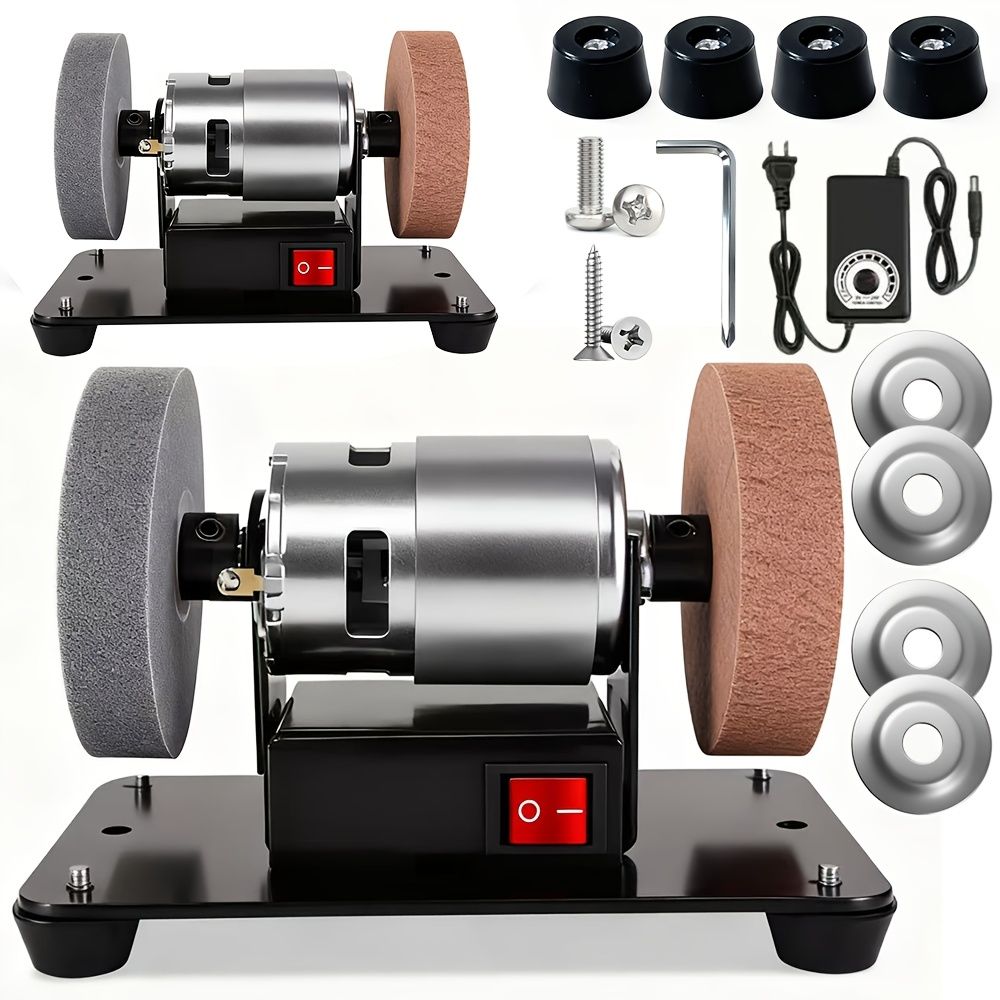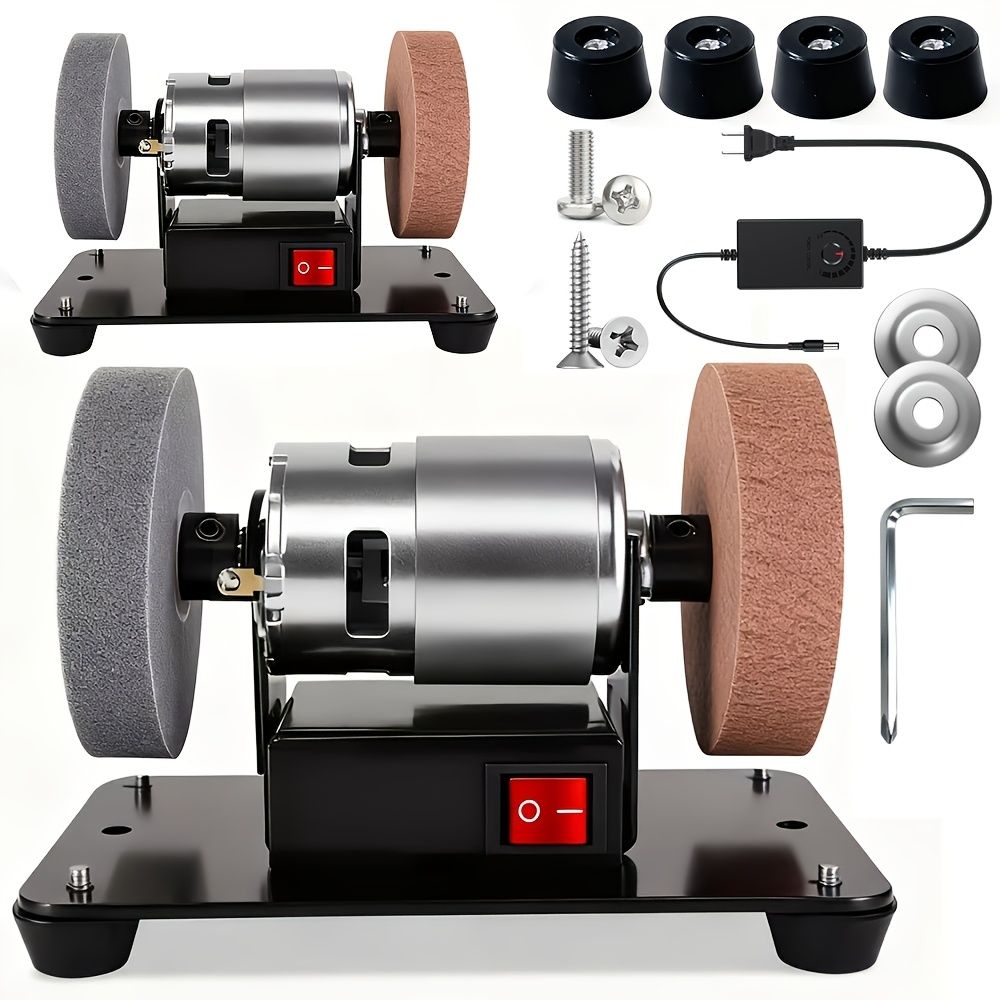 Variable Speed Electric Belt Sander | Dual Wheel Electric Bench Grinder | Non-Slip & Low Noise | Metal Wood Stone Jewelry Grinding & Polishing Machine | Desktop Electric Coarse & Fine Grinding Wheel Polishing Stone